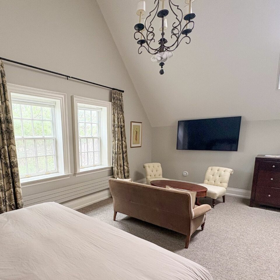 Located on the second floor of Petit Pont, this spacious room features a king bed, striking cathedral ceilings and a private 3-piece bathroom with a shower.