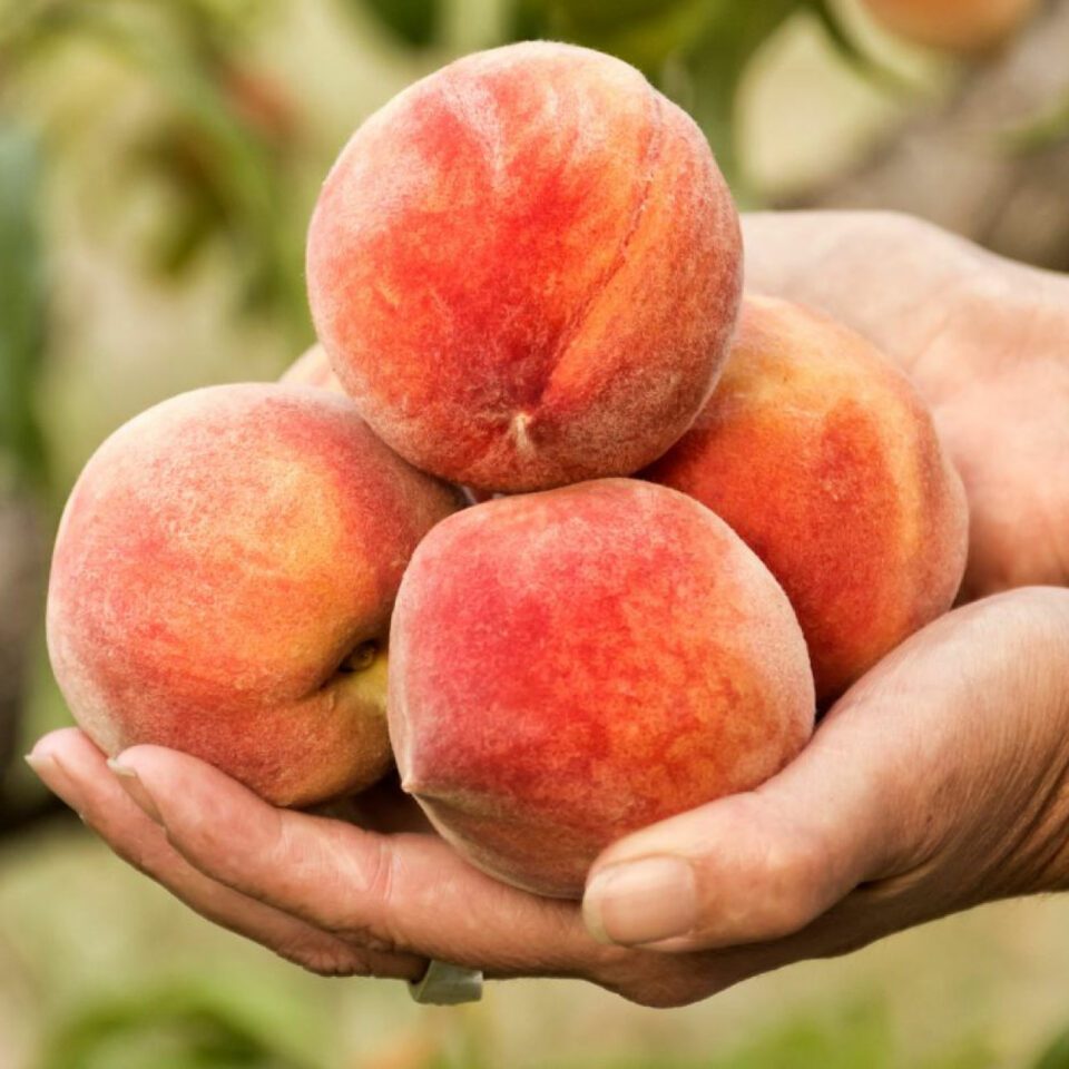 Drizzle canola oil onto the peach pieces, ensuring they are evenly coated.