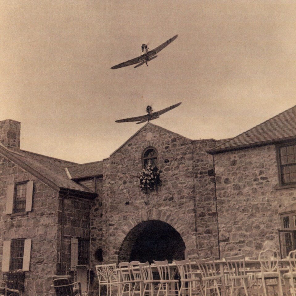 As a tribute to the newlyweds, they flew in “V” formation over Ste. Anne’s, dropping messages of goodwill.