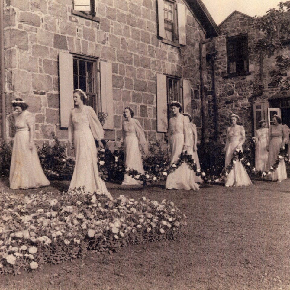 The following summer, Jane Owen was visiting her parents at Ste. Anne’s when her daughter Janie was born. Just three weeks later, they were preparing to return to their home in the States. Mr. Blaffer wanted to do something special for his daughter and new granddaughter. He went to Toronto to exchange their regular train ticket for a private coach so they could travel more comfortably. Sadly, he suffered a heart attack while he was there and died. Mrs. Blaffer continued to spend her summers at Ste. Anne’s and her children came to be with her. Jane Owen’s second daughter also was born there. Mrs. Blaffer was never happier than when her grandchildren came to visit. She had a playhouse built for them to the east of the main house. The design for this circular stone house was taken from a French dovecote, called a pigeonnier. For symmetry, a matching stone building was added to the west side of the house. It held the laundry facilities.